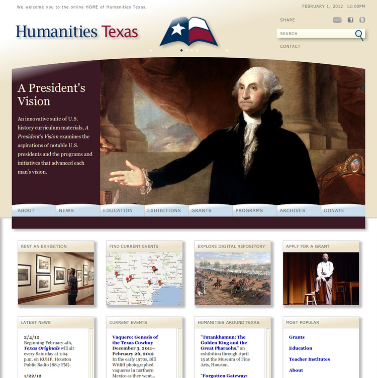 This Humanities Texas website redesign received a Gold Certificate and Judge's Favorite in the 2012 Texas Association of Museums Mitchell A. Wilder Awards Design Competition.