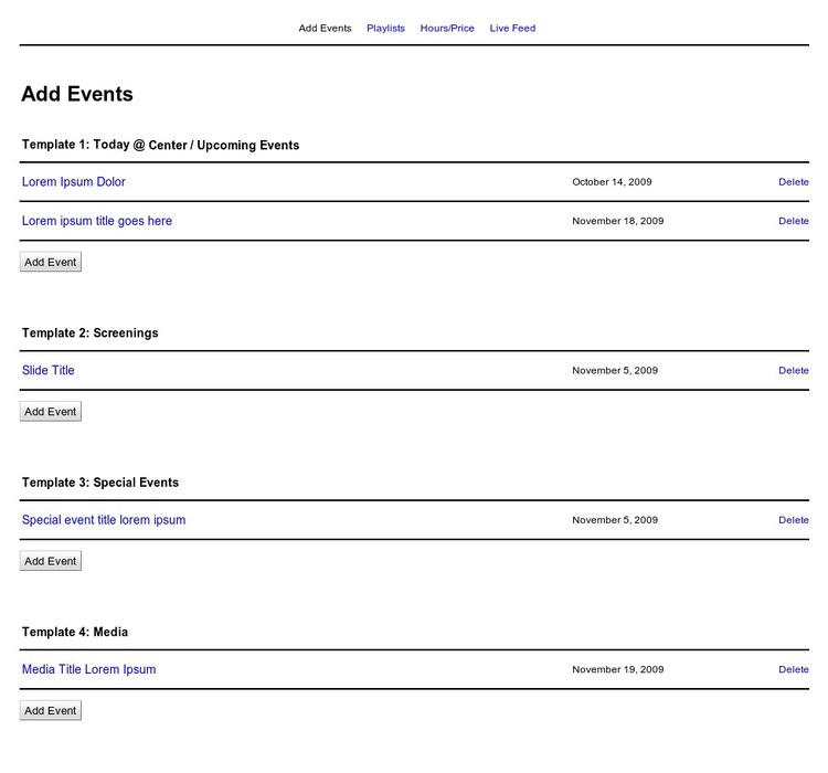 - Planned and implemented the software architecture of this intranet CMS to manage the content of a plasma display for the center’s visitors