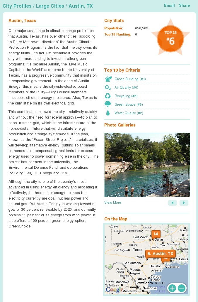 - Developed a database of city survey results for display in the CityGrid and in ranking lists throughout the site
